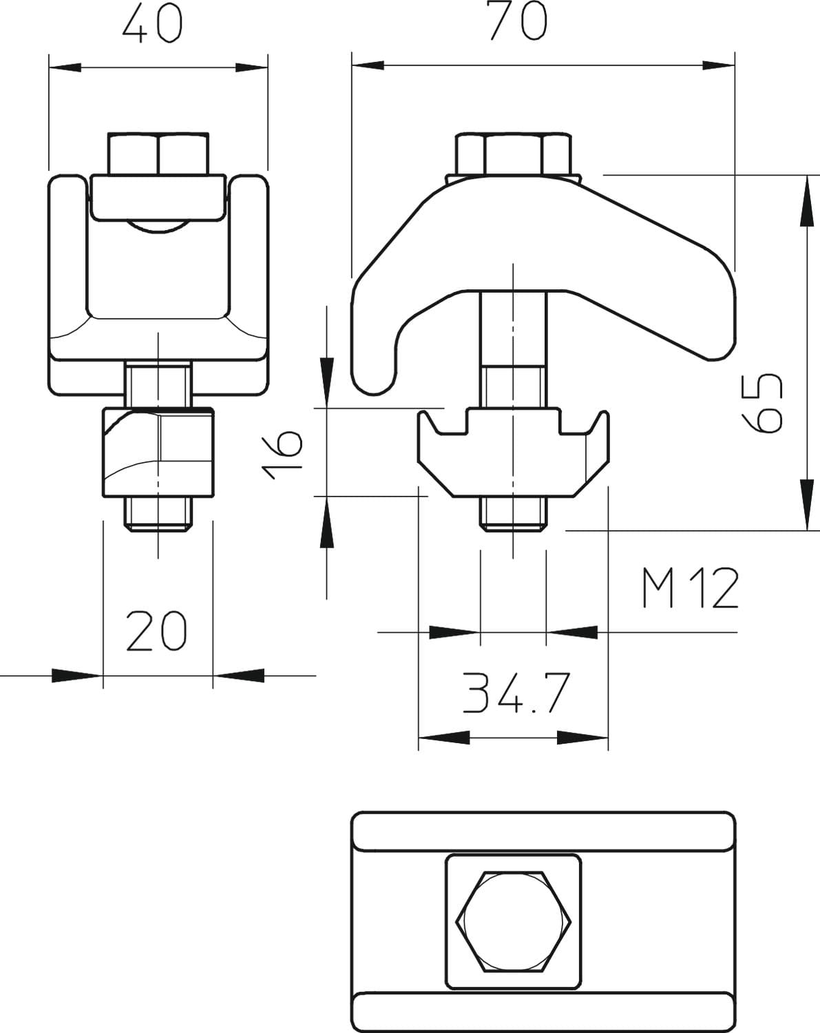 Staffa di serraggio in versione pesante con dado scorrevole per il fissaggio di profilati ai supporti in acciaio.