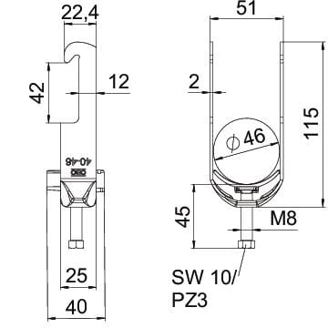 OBO BETTERMANN - Staffa reggicavo 2056 40-46mm Acciaio INOX A2 1.4301 non trattato ulteriore trattamento BS-W1-K-46 A2. 1187838