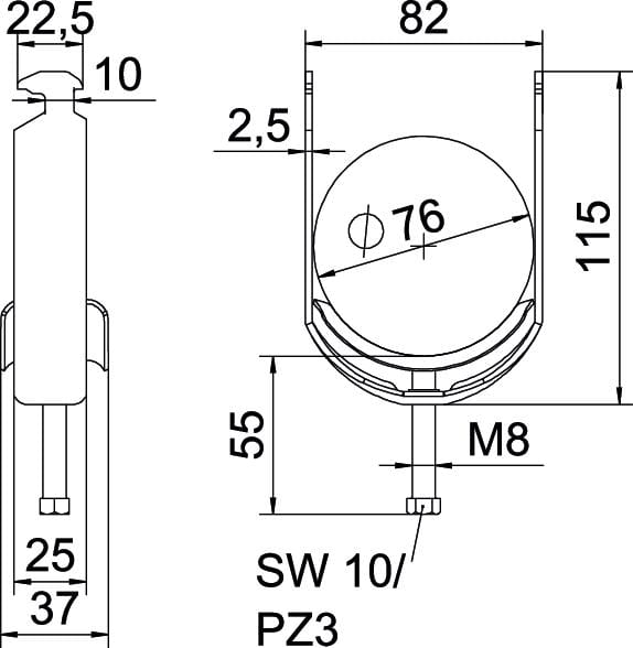OBO BETTERMANN - Staffa reggicavo 2056 70-76mm in acciaio zincato per immersione FT BS-H1-M-76. 1186076