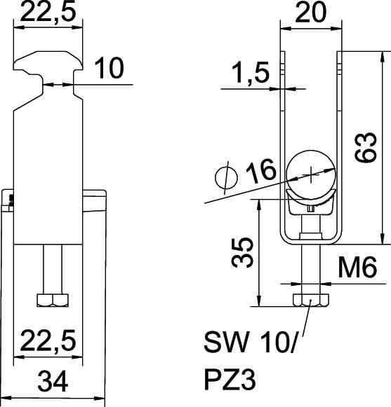OBO BETTERMANN - Staffa reggicavo 2056 doppia 12-16mm in acciaio zincato a caldo per immersione FT BS-H2-K-16. 1186210