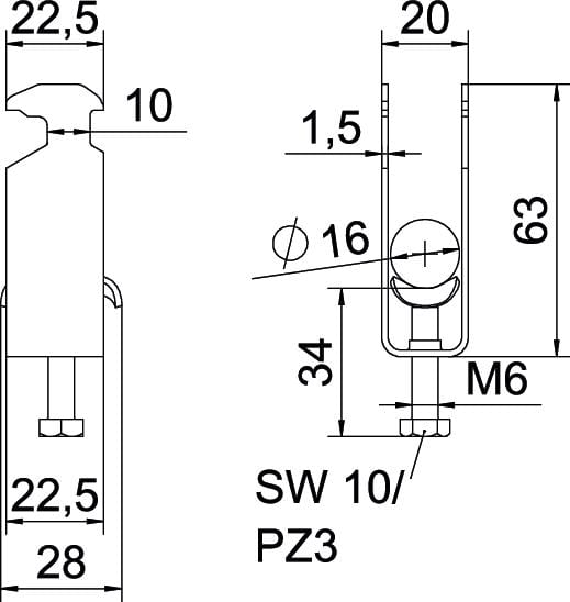 OBO BETTERMANN - Staffa reggicavo 2056 doppia 12-16mm in acciaio zincato a caldo per immersione FT BS-H2-M-16. 1186010