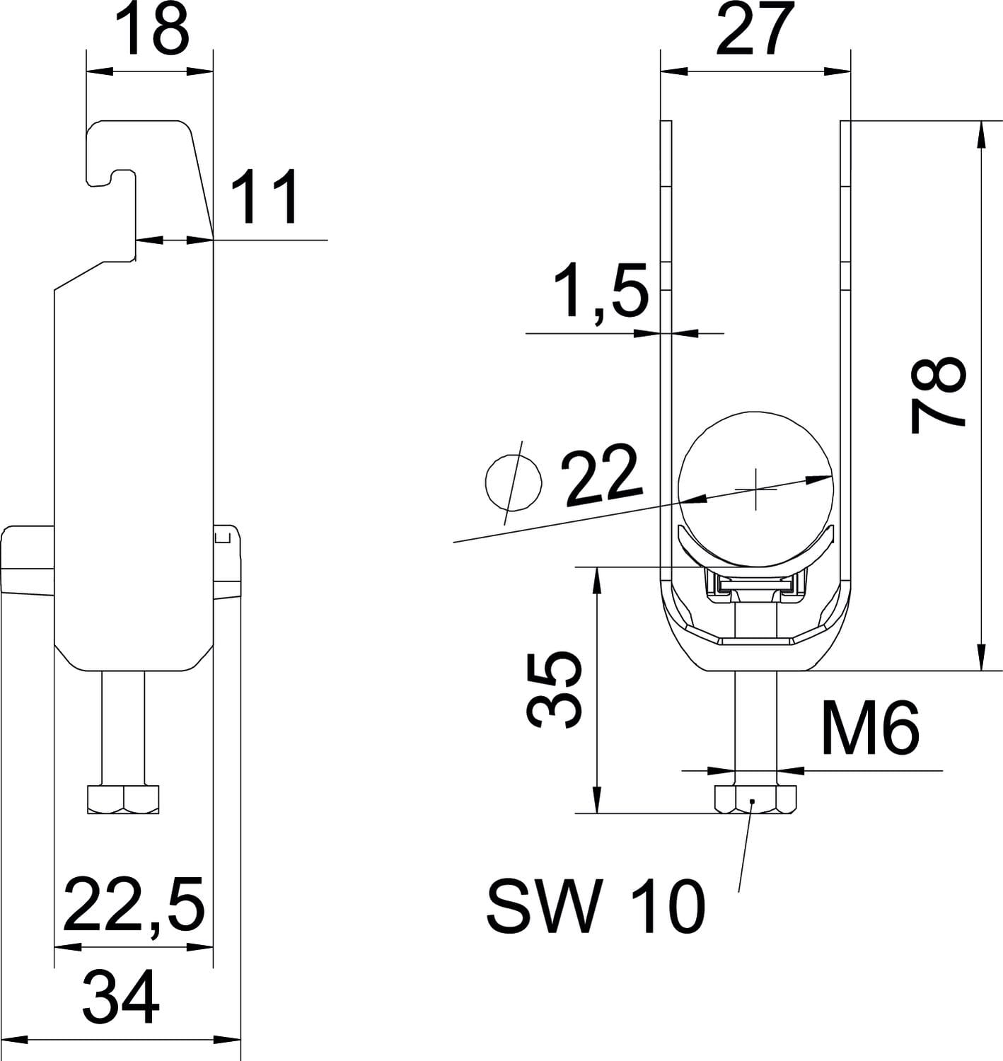 OBO BETTERMANN - Staffa reggicavo 2056 doppia 16-22mm in acciaio zincato a caldo per immersione FT BS-U2-K-22. 1186717