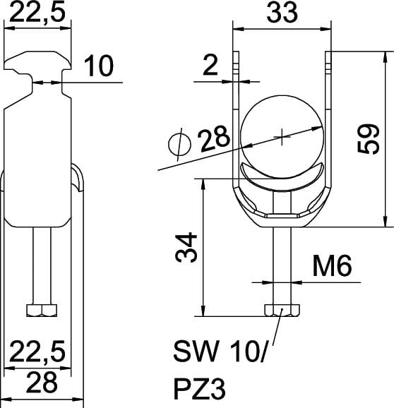 OBO BETTERMANN - Staffa reggicavo 2056 doppia 22-28mm in acciaio zincato a caldo per immersione FT BS-H2-M-28. 1186023