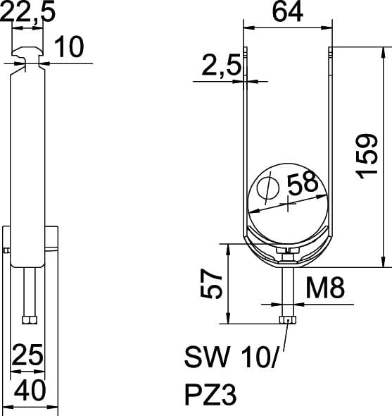 OBO BETTERMANN - Staffa reggicavo 2056 doppia 52-58mm Acciaio INOX A2 1.4301 non trattato ulteriore trattamento STAFFA REGGICAVO BS-H2-K-58 A2 1186357