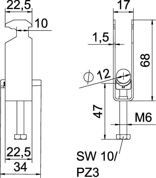 OBO BETTERMANN - Staffa reggicavo 2056 tripla 08-12mm in acciaio zincato a caldo per immersione. 1186204
