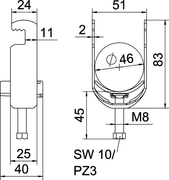 OBO BETTERMANN - Staffa reggicavo BS-F1-K-46 2056 40-46mm in acciaio zincato a caldo per immersione. 1187638