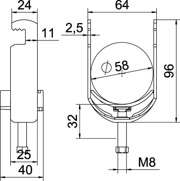 OBO BETTERMANN - Staffa reggicavo BS-F1-K-58 2056 52-58mm Acciaio zincato caldo immersione.
