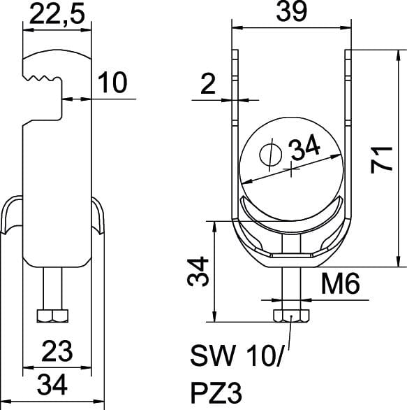 OBO BETTERMANN - Staffa reggicavo BS-F1-M-34 2056 28-34mm Acciaio INOX A2 1.4301 non trattato ulteriore trattamento. 1187526