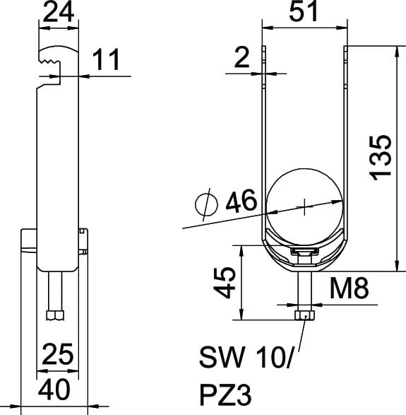 OBO BETTERMANN - Staffa reggicavo BS-F2-K-46 FT 2056 doppia 40-46mm Acciaio zincato caldo immersione. 1187639