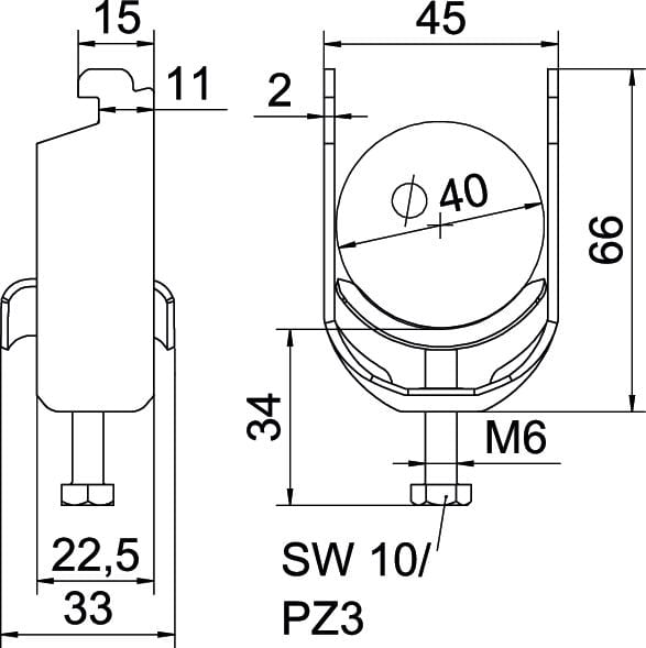 Staffa reggicavo con ancoraggio tipo N, coppa in metallo con bordi arrotondati per proteggere il cavo. Per il montaggio verticale e orizzontale di 1 cavo singolo su profilato a C. Per asola 11 - 12 mm. Con coppa di pressione, testa a vite esagonale universale SW10, intaglio a croce e a taglio. Per il montaggio in ambiente interno ed esterno. Si raccomanda l'uso della controcoppa.