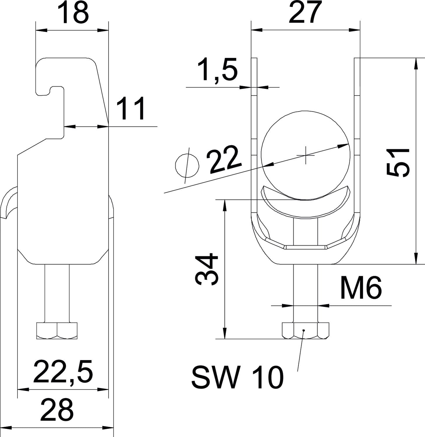 OBO BETTERMANN - Staffa reggicavo BS-U1-M-22 FT 2056 16-22mm Acciaio zincato caldo immersione. 1186516