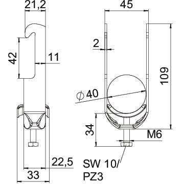OBO BETTERMANN - Staffa reggicavo BS-W1-M-40 2056 34-40mm Acciaio INOX A2 1.4301 non trattato ulteriore trattamento. 1188032
