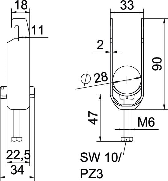 OBO BETTERMANN - Staffa reggicavo doppia 22-28mm BS-U2-K-28 in acciaio zincato a caldo per immersione 2056. 1186723