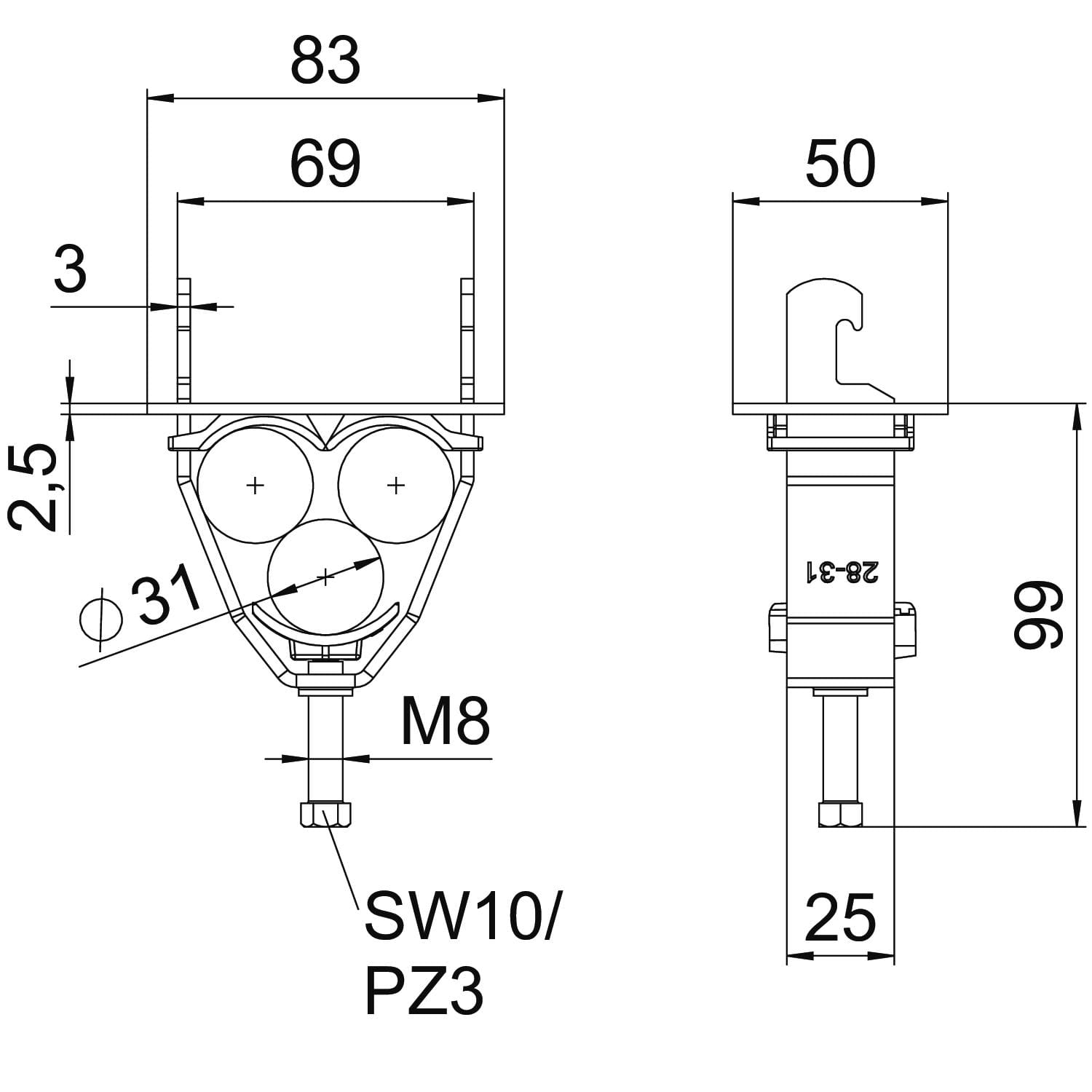 OBO BETTERMANN - Staffa reggicavo per 3 conduttori da 28 a 31mm in acciaio zincato a caldo per immersione. 1174541