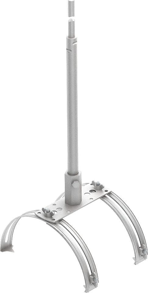 Supporto per aste per tetto di tegole, per il fissaggio rapido, semplice e sicuro delle aste di captazione di 16 mm di diametro • Sistema composto da supporto in acciaio V2A e asta di captazione in alluminio • montaggio rapido e agevole grazie alle aste di captazione preassemblate • lunghezza asta di captazione: 1000 mm • larghezza regolabile di 180-260 mm • larghezza regolabile di: 110 mm (5403330) • larghezza regolabile di: 300 mm (5403333) Utilizzo: per la protezione delle strutture sopratetto come ad es. impianti fotovoltaici e impianti TV/SAT.