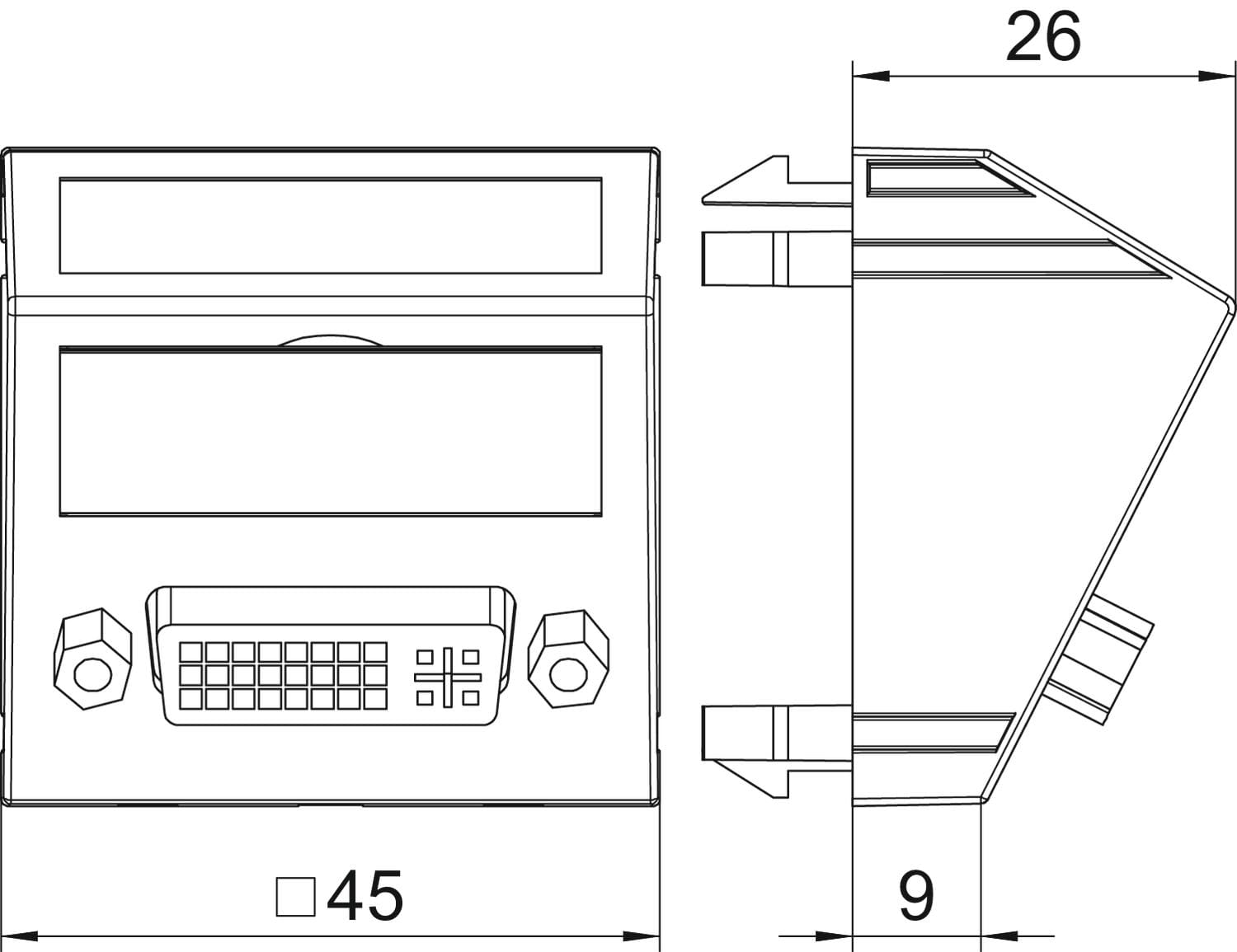 OBO BETTERMANN - Supporto multim., DVI con cavo, presa 45x45mm Policarbonato alluminio laccato MTS-DVI F AL1.