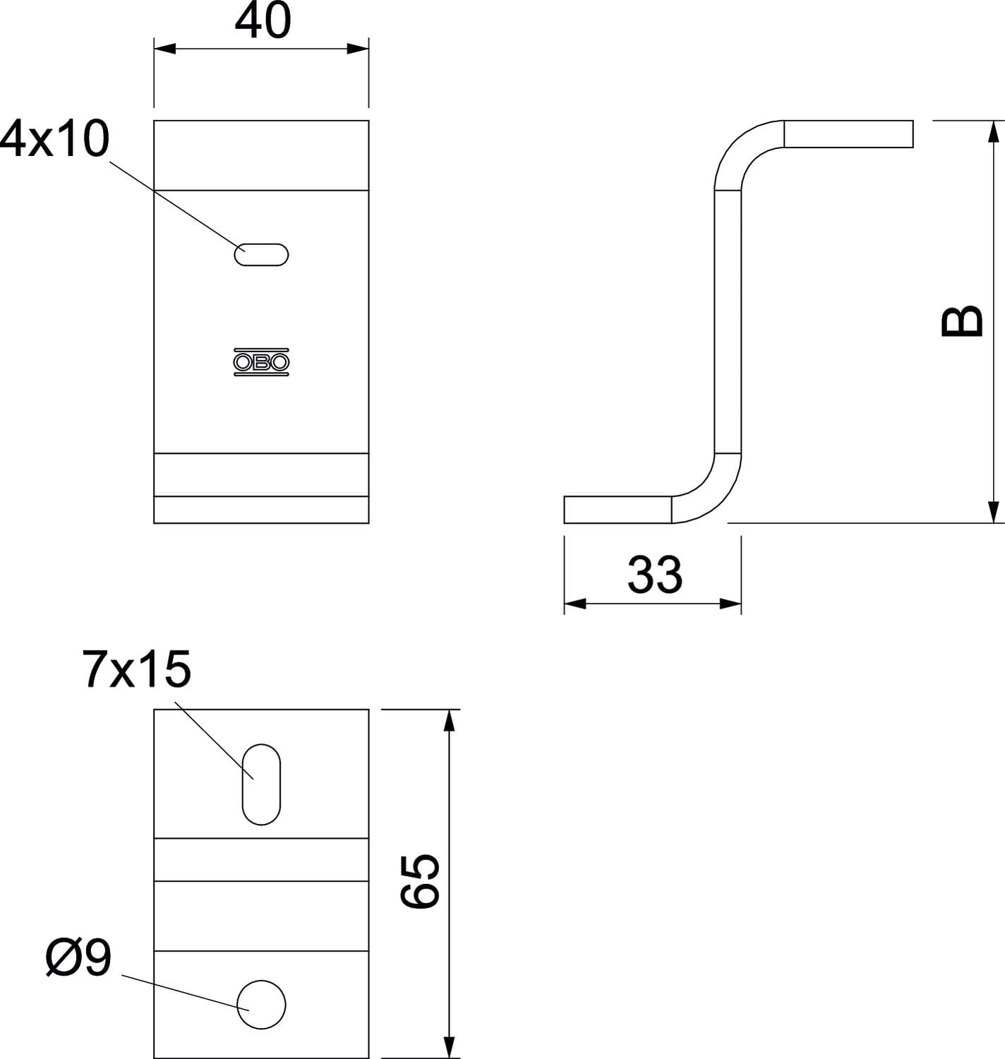 OBO BETTERMANN - Supporto Z per BKRS, altezza impianto 100 mm, 65x40x75, acciaio zincato a caldo per immersione.