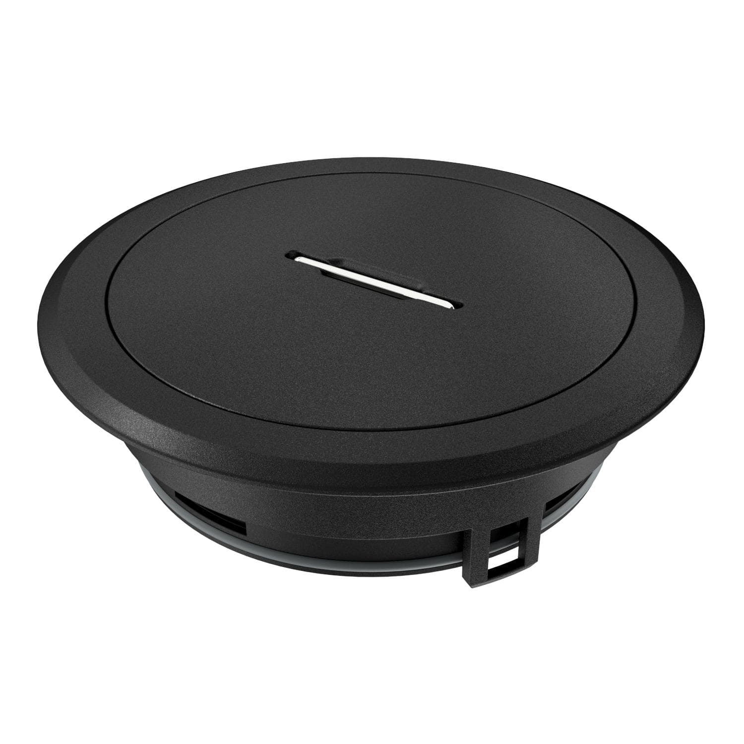 Coperchio incernierato con cursore di arresto per torretta a scomparsa GES R2 per l'installazione diretta nel supporto dispositivi MT R2; per uso prettamente interno. L'uscita tubo soddisfa i requisiti della norma CEI EN 50085-2-2 su pavimenti trattati a lavaggio bagnato anche durante l'utilizzo della torretta.