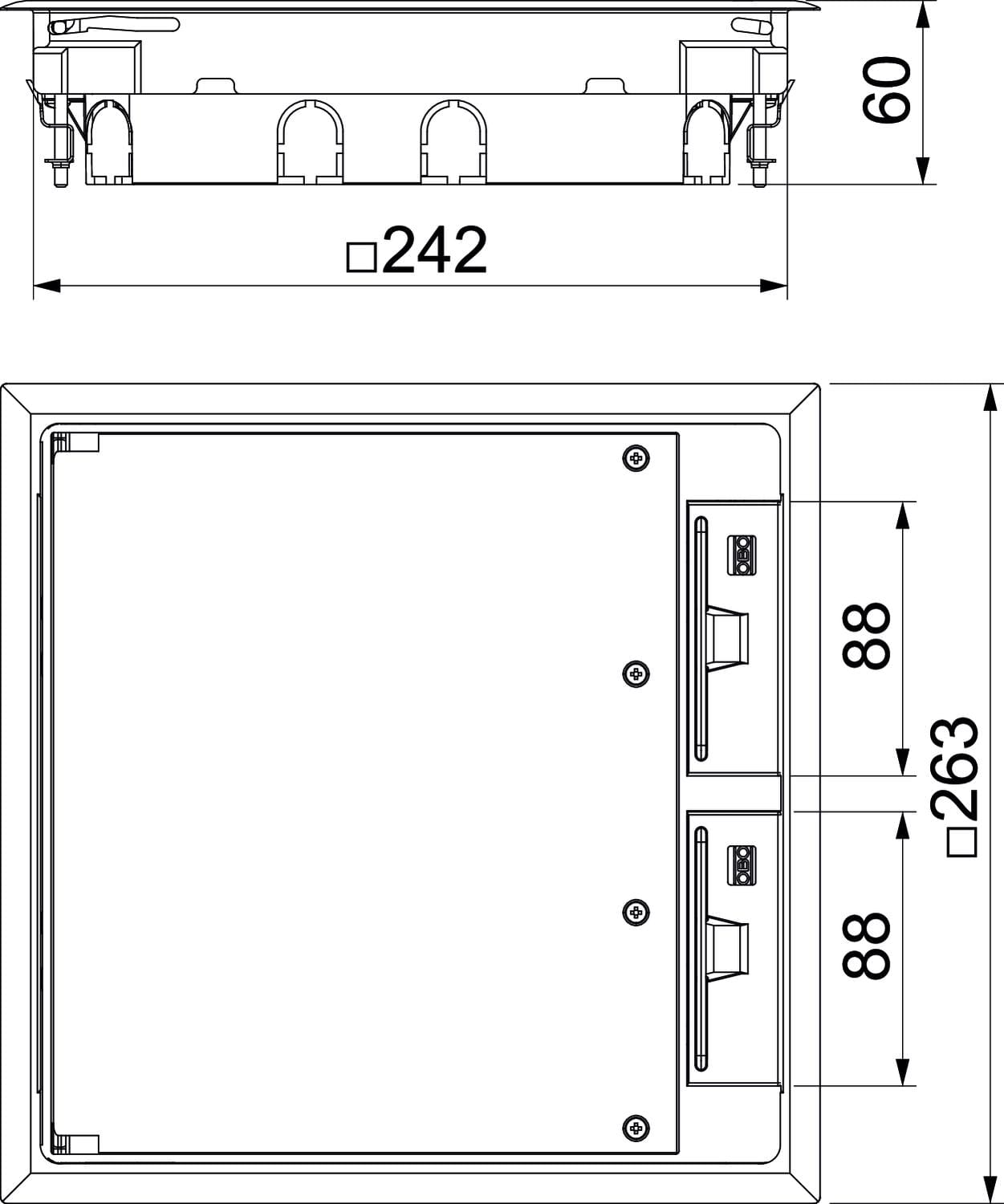 OBO BETTERMANN - Torretta scomparsa per montaggio pavimento 263x263x59 in Poliammide grigio ferro RAL 7011. 7405037