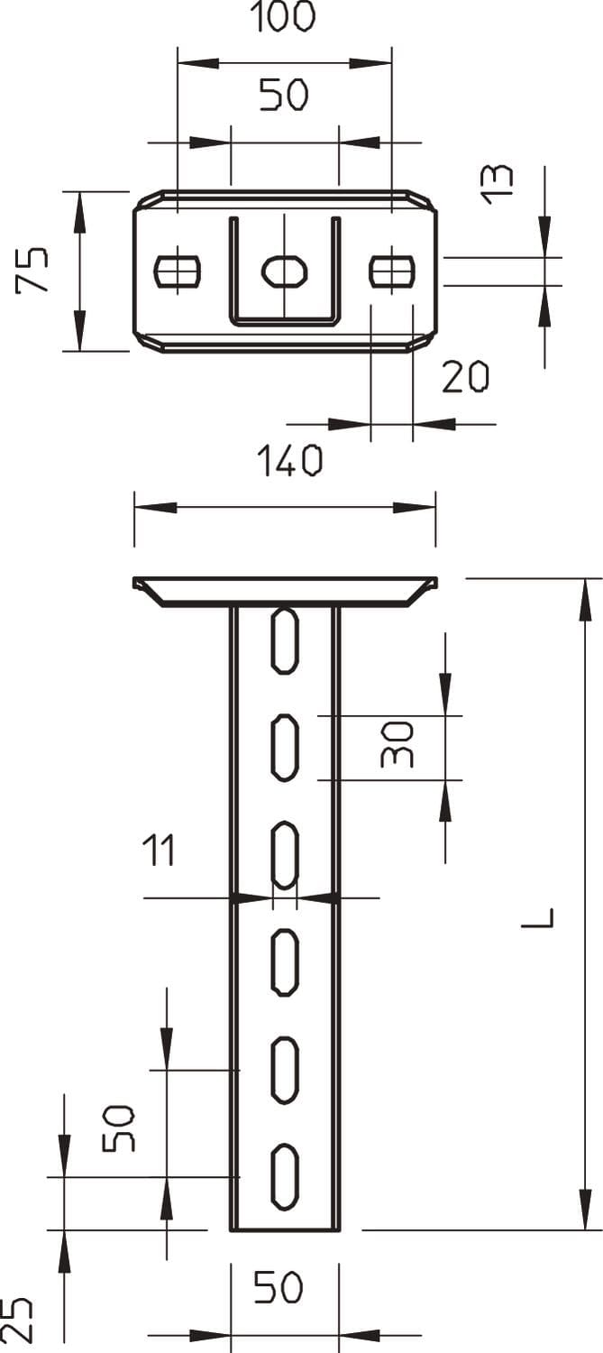 OBO BETTERMANN - US 5 K 30 FT Profilato di sospensione supporto con piastra testa saldata 50x50x300 acciaio zincato caldo immersione. 6341535