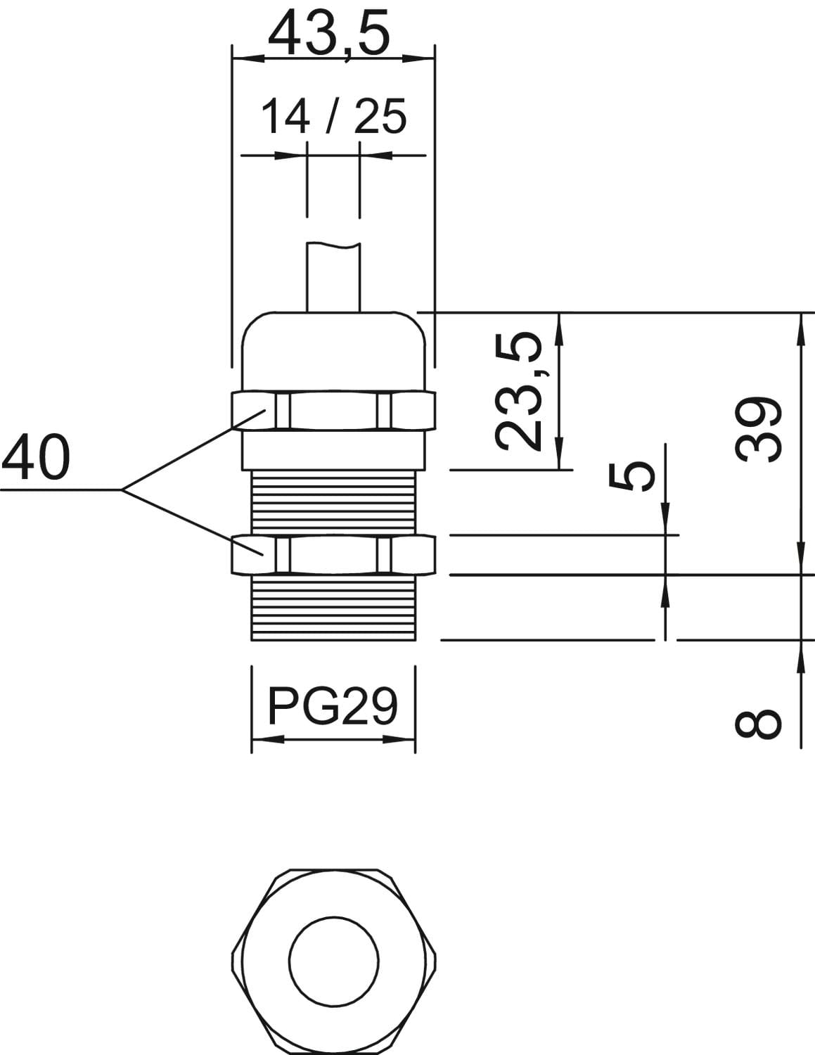 Dimensione nominale della filettatura metrica/PG - 29