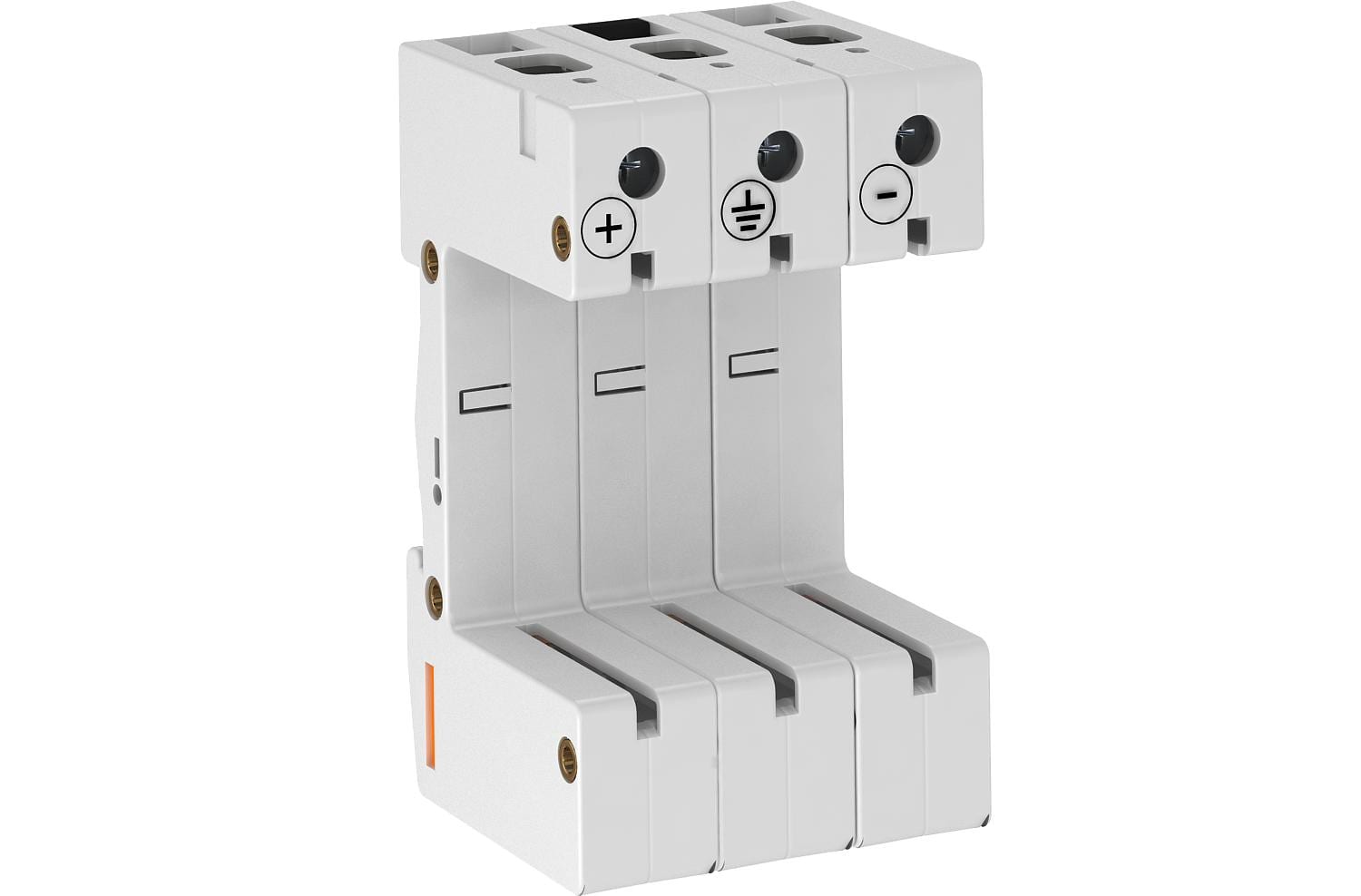Base per limitatore di sovratensione per impianti fotovoltaici fino a Uoc=1000V (collegamento a Y) • Adatta a parti superiori di limitatori combinati V 25-B+C tipo 1+2 • Adatta a parti superiori di limitatori di sovratensione V 20-C tipo 2 • Collegamento di protezione contro tensioni trasversali e prolungate • Collegamento di sicurezza a Y • Livello di protezione DC basso: < 4,0 kV (Uoc max = 1000V DC con V20-C/0-440) • Livello di protezione DC basso: < 3,0 kV (Uoc max = 900V DC con V25-B+C/0-385) • Livello di protezione DC basso: < 2,6 kV (Uoc max = 600V DC con V50-B+C/0-280) • Collegamenti contrassegnati Utilizzo: in impianti fotovoltaici tra i moduli fotovoltaici e l'inverter.