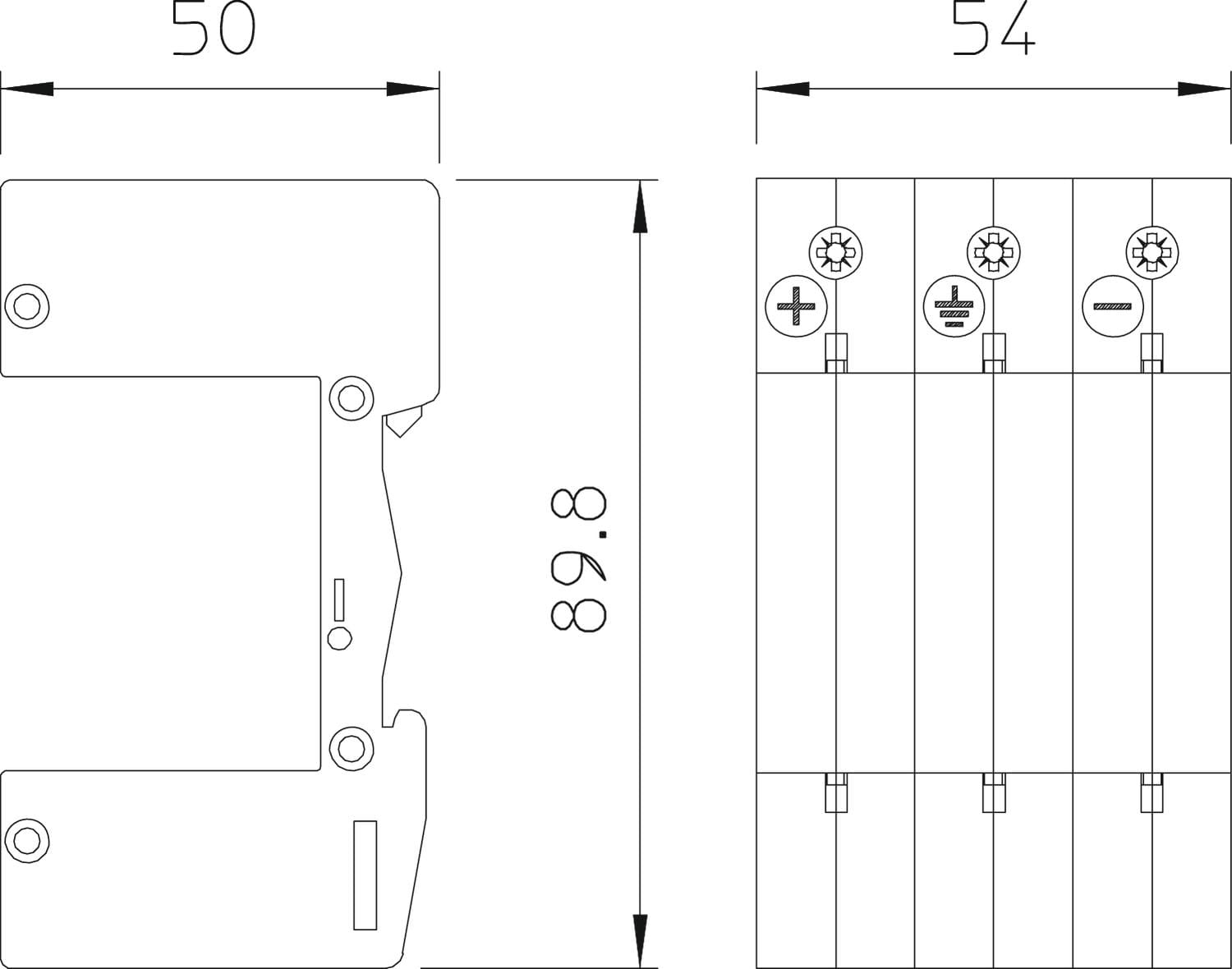 Base per limitatore di sovratensione per impianti fotovoltaici fino a Uoc=1000V (collegamento a Y) • Adatta a parti superiori di limitatori combinati V 25-B+C tipo 1+2 • Adatta a parti superiori di limitatori di sovratensione V 20-C tipo 2 • Collegamento di protezione contro tensioni trasversali e prolungate • Collegamento di sicurezza a Y • Livello di protezione DC basso: < 4,0 kV (Uoc max = 1000V DC con V20-C/0-440) • Livello di protezione DC basso: < 3,0 kV (Uoc max = 900V DC con V25-B+C/0-385) • Livello di protezione DC basso: < 2,6 kV (Uoc max = 600V DC con V50-B+C/0-280) • Collegamenti contrassegnati Utilizzo: in impianti fotovoltaici tra i moduli fotovoltaici e l'inverter.