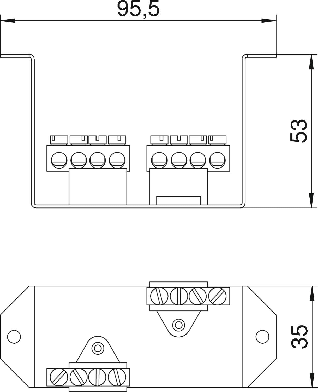 Supporto con morsettiera N e PE per il montaggio di automatismi di sicurezza, composto da: - elemento di fondo con guida a cappello da 35 mm, morsettiera N 4 x 10 mm² e morsettiera PE 4 x 10 mm² - Materiale di fissaggio