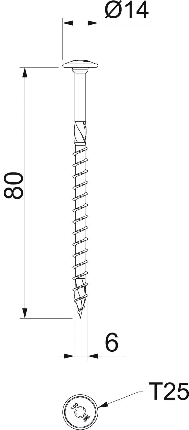 OBO BETTERMANN - Vite ancoraggio per legno 6x80 in acciaio zincato galvanizzato. 3498132