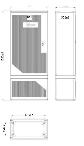Contenitore in vetroresina per gruppi di misura, grigio RAL 7001, IP 34 D. Versione senza logo e serratura Enel 4541 Unificata Nazionale. Predisposto per l’installazione del gruppo integrato GTWS completo di tavola porta TA, DY 4451 e DY 4471. Per tutte le altre applicazioni è possibile utilizzare la piastra di fondo. Il complesso e formato da: un armadio con sportello di tipo rigato incernierato, con apertura di 90° e possibilità di rimozione totale dello stesso per un più agevole accesso. Da uno zoccolo fissato alla base in modo da distanziarlo dal pavimento per ottenere una maggiore praticità di lavoro. Deve essere installato a pavimento mediante telaio di ancoraggio N1ST0560 che è compreso nell’articolo.