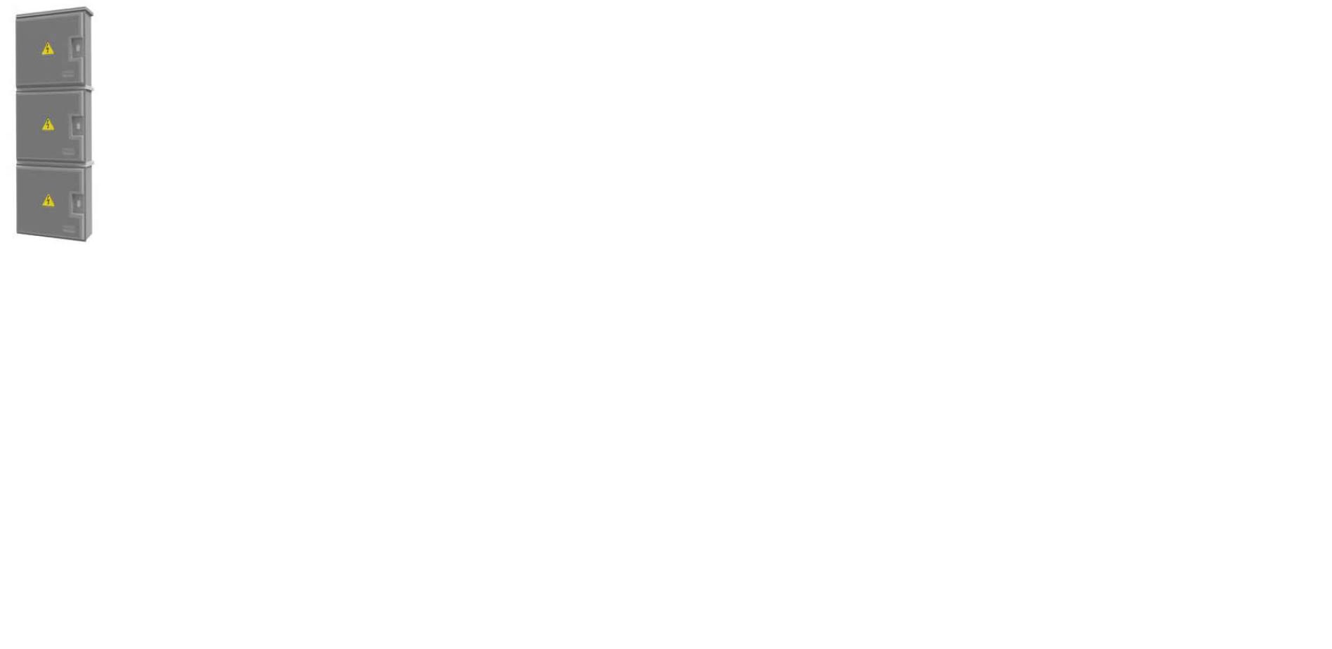 Lo sportello è liscio, incernierato, con apertura di 90° e possibilità di rimozione totale per facilitare l'accesso. È disponibile anche in versione con finestrella trasparente. La serratura è a tre punti di chiusura e può essere fornita con diverse tipologie di chiave (triangolare, a spillo, Yale o nazionale). L'aerazione interna è ottenuta tramite un labirinto tra il coperchio e le pareti perimetrali. Il contenitore può essere fissato a muro, su palo tramite staffa, a pavimento con telaio o a basamento con piastra di raccordo. Il lato inferiore è dotato di tre fori rivestiti in gomma per il passaggio e la protezione dei cavi. La fornitura standard prevede un fondo chiuso con fori per il passaggio dei cavi, con eccezione delle versioni senza tetto che hanno il fondo aperto.