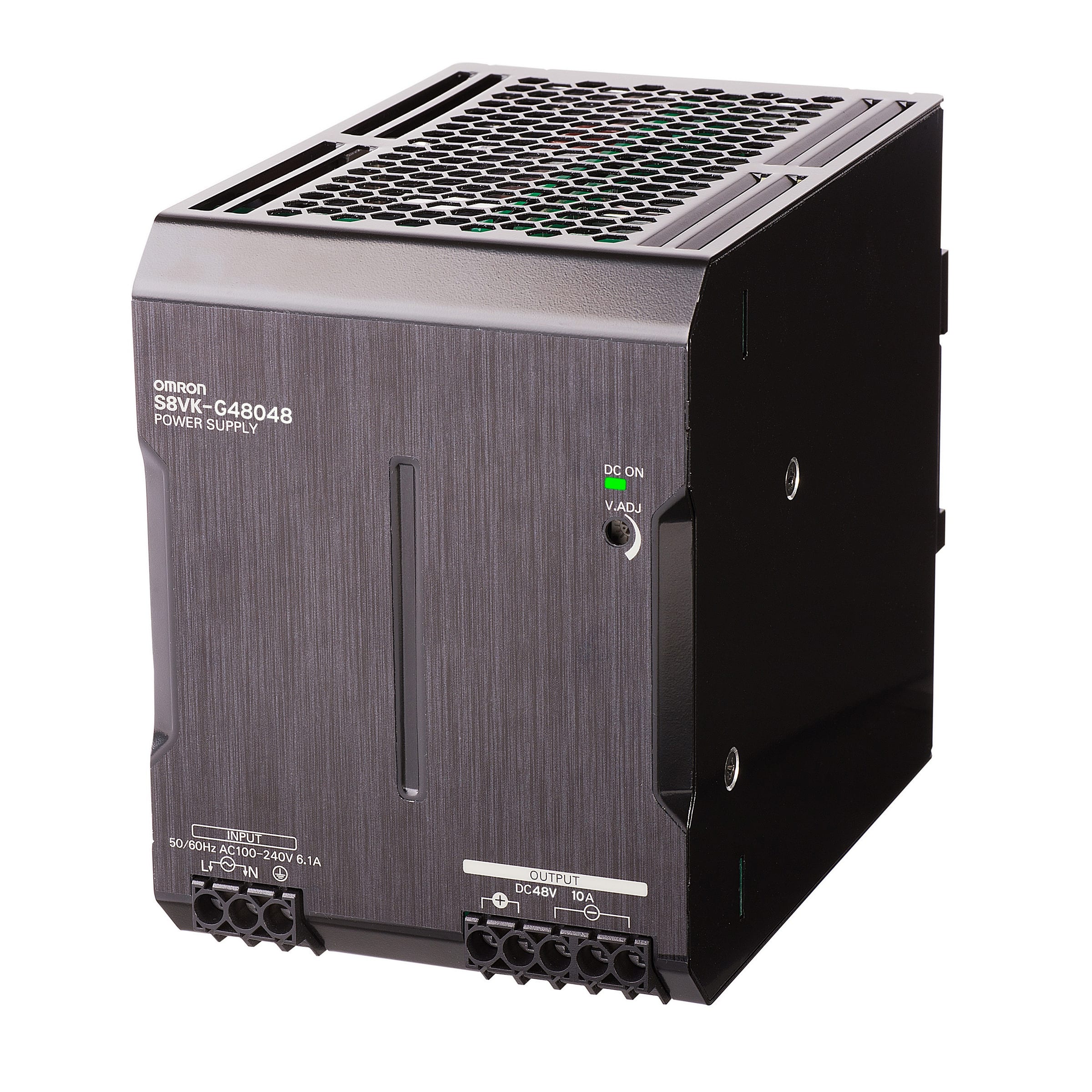 OMRON ELECTRONICS - Alimentatore S8VK-G monofase 480W, ingresso 100-240Vca, uscita 48Vcc/10A, classe B, modello protetto, montaggio guida DIN, terminali vite. S8VKG48048