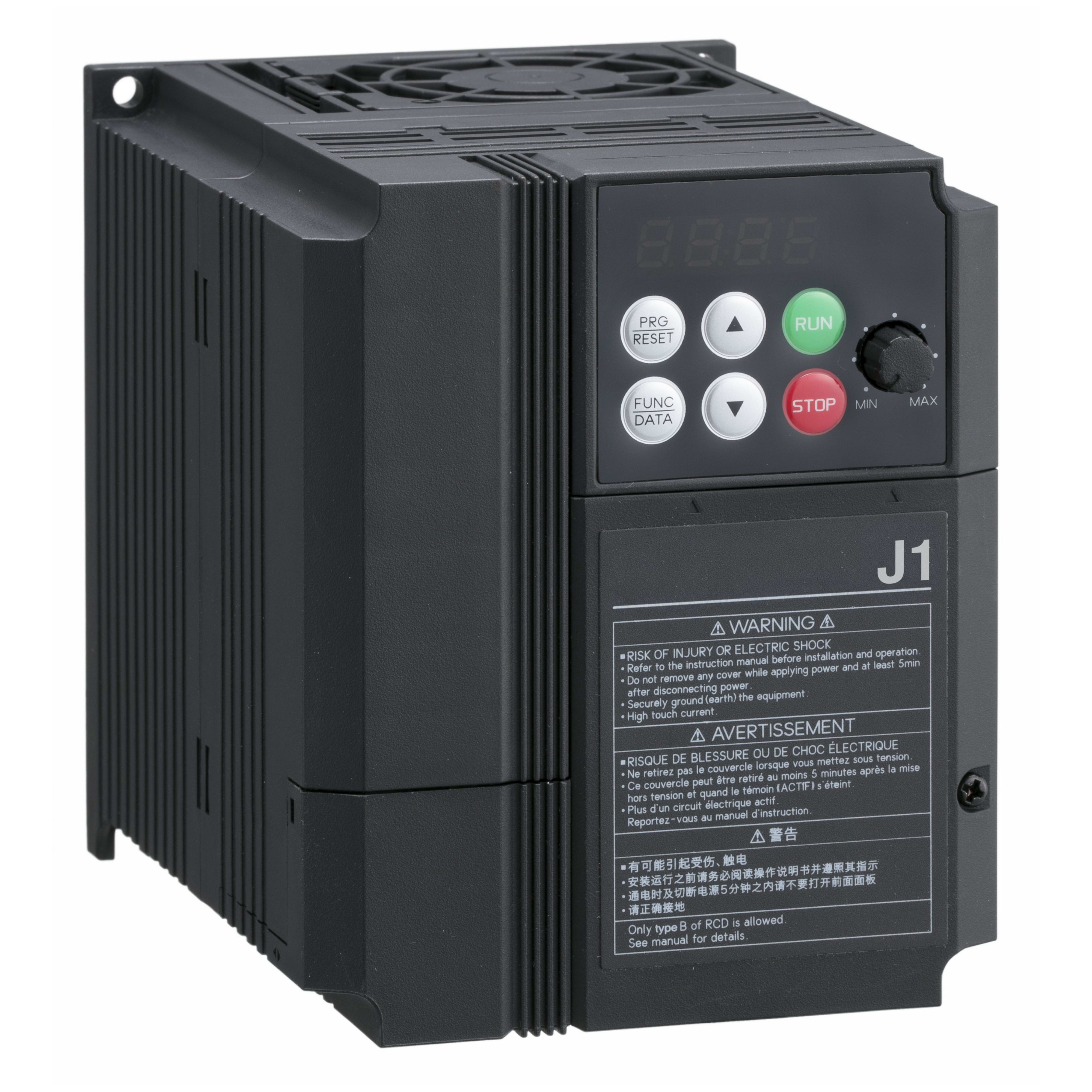OMRON ELECTRONICS - Inverter J1, 400V, trifase, 1,5kW, 4,3A, controlli V/f, max. freq. 400Hz. J1A4015E