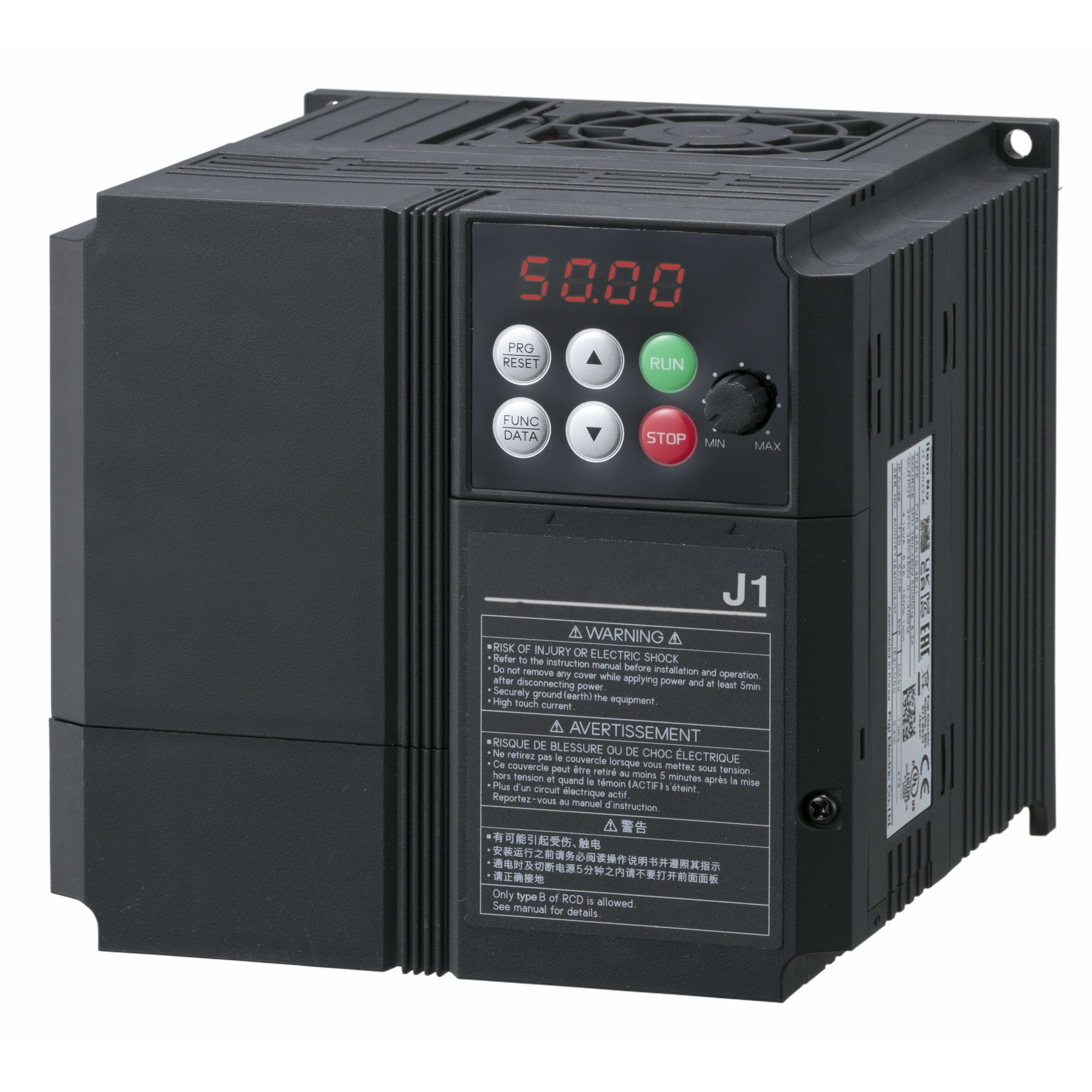 Inverter J1, 400 Vc.a. trifase, 3,7 kW, 10,5 A, controlli V/f, max. freq. 400 Hz