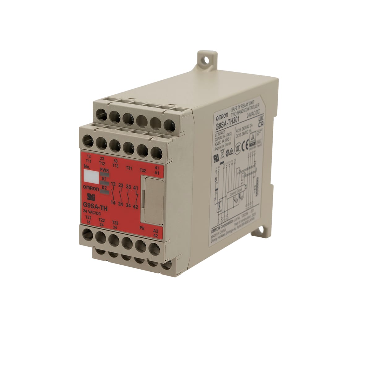 OMRON ELECTRONICS - Modulo bimanuale 24Vacdc 3NO+1NC modulo di sicurezza per comando bimanuale 5A/250Vac. G9SATH30124ACDC-