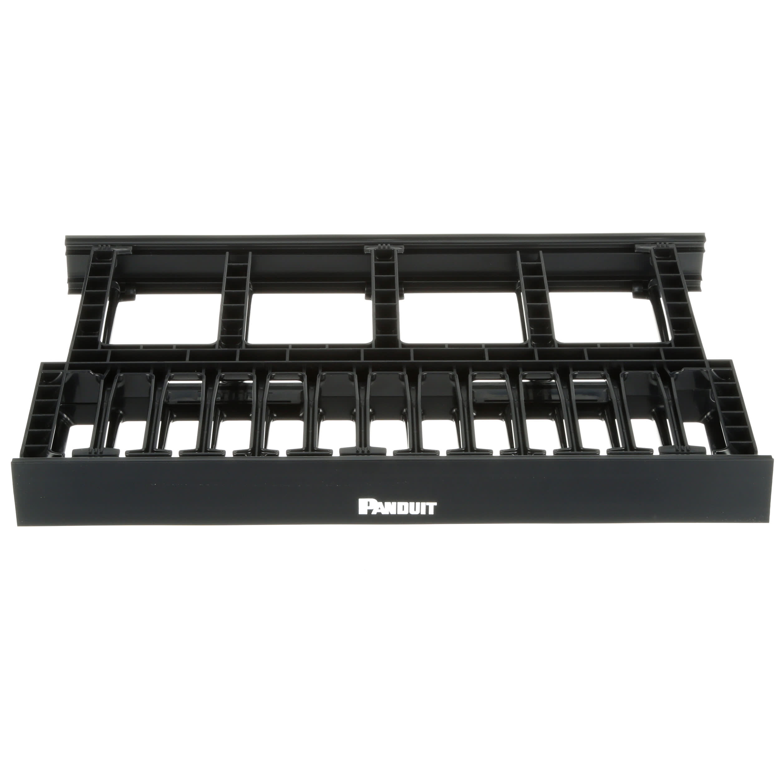 The NetManager™ High Capacity Horizontal Cable Manager cost-effectively organizes and protects copper and fiber network cabling in any standard EIA 19 inch (483mm) rack or cabinet. Large front finger openings easily accommodate Cat 6 and 6A cables, reducing installation time and maintenance costs. The dual-sided manager is 1 RU and has hinged front and rear covers. The manager is black.
