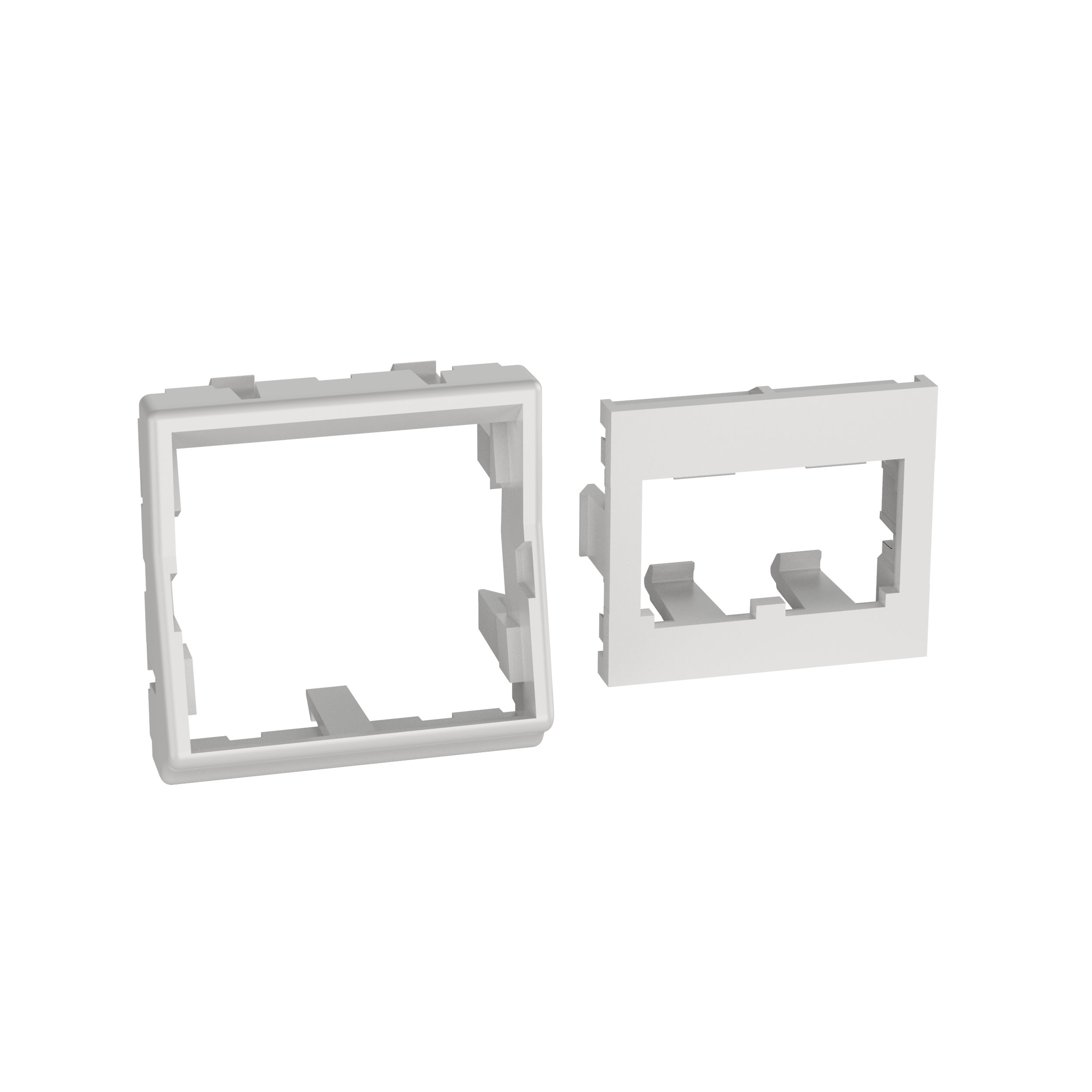 The Mini-Com® 45mm x 45mm Faceplate Adapter accepts two Mini-Com Modules. The adapter mounts to standard 45mm x 45mm openings and includes a frame and a half-size flat insert. The adapter can be identified with an adhesive label and is arctic white.