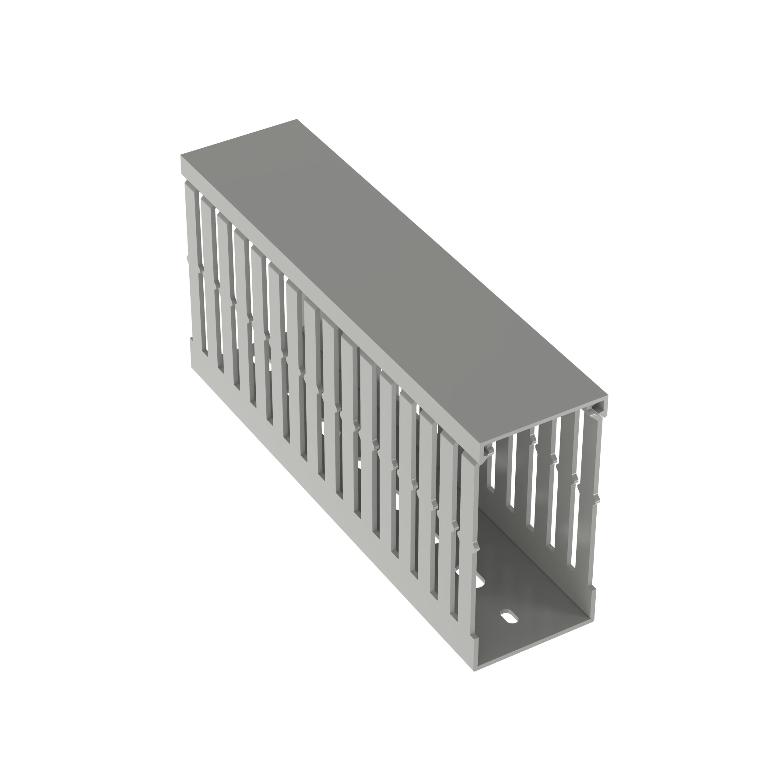 The MC50X100IG2 Panduct Lead-Free PVC Narrow Slot Wiring Duct is 49.5 mm x 97.8 mm (1.95'' x 3.85''). It features a narrow slot/finger design that closely matches the spacing of high-density components. Upper and lower scorelines allow for easy finger/sidewall section removal. UL 94 flame class of V-0 with a UL recognized continuous-use temperature up to 122°F (50°C). Mounting holes provided. Lead-free PVC. Cover included. Color - International Gray. 10 Meters (5 sticks each) - Bases & Covers per package.