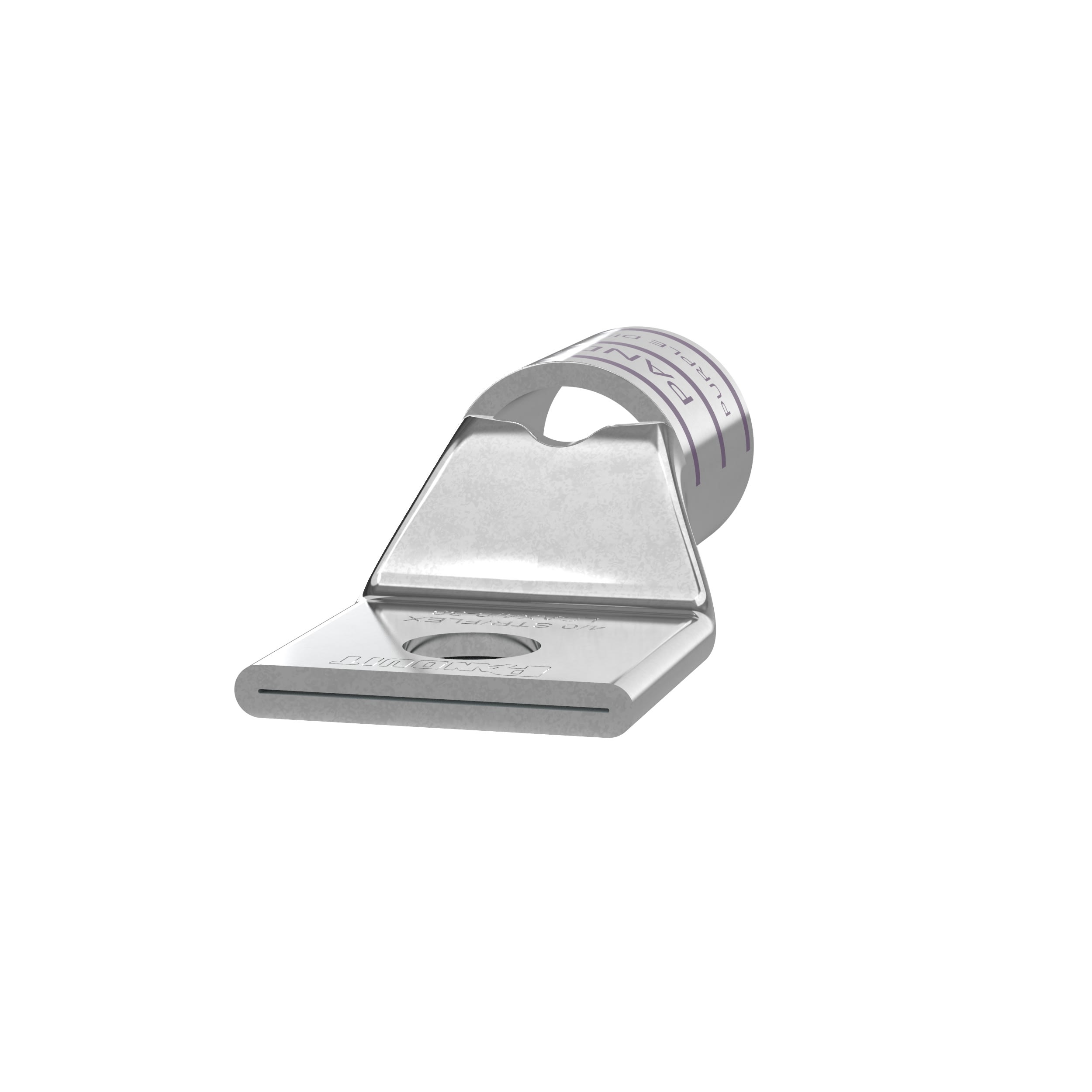 The LCAX4/0-38-X Tin-Plated Copper Compression Lug, one-hole, standard barrel, has color-coded barrels marked with Panduit and specified competitor die index numbers for proper crimp die selection. The generously beveled wire entry prevents bent back strands when inserting the conductor into the barrel. An inspection window aids to visually assure full conductor insertion, and the tin-plate material helps to inhibit corrosion. UL Listed and CSA Certified.