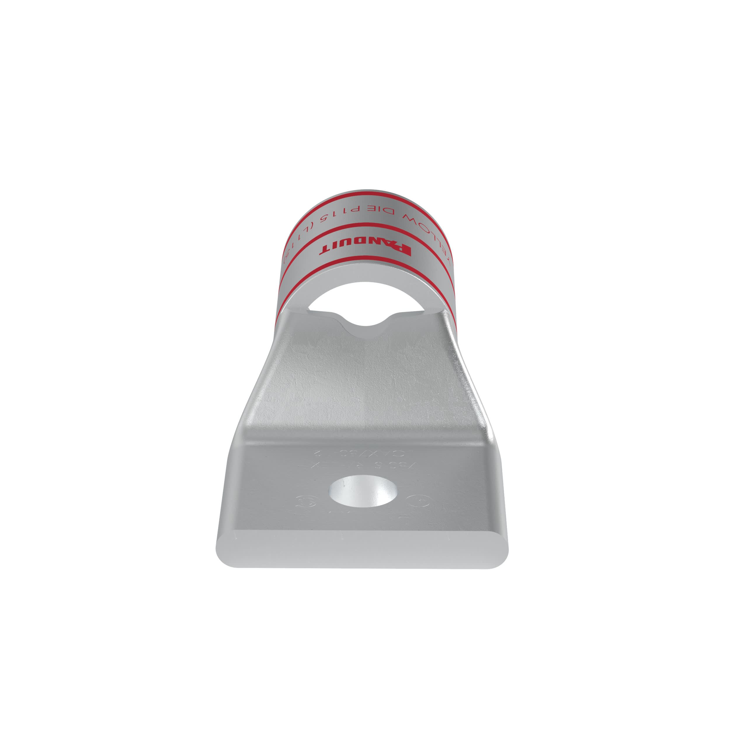 The LCAX750-12-3 One-Hole, Copper Compression Lug, one-hole, standard barrel, has color-coded barrels marked with Panduit and specified competitor die index numbers for proper crimp die selection. An inspection window aids to visually assure full conductor insertion, and the tin-plate material helps to inhibit corrosion. UL Listed and CSA Certified to 35 KV and temperature rated to 90°C.