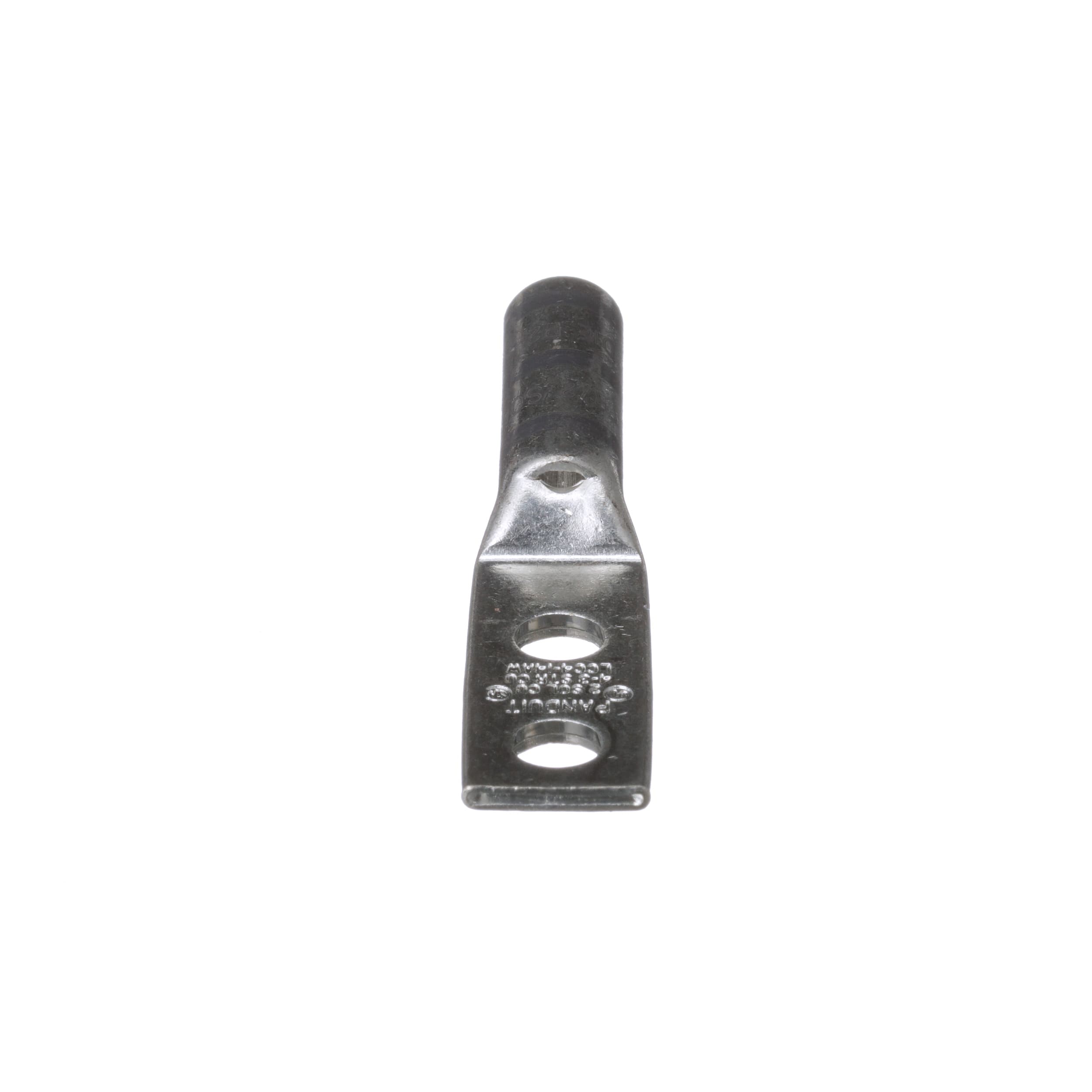 Copper Compression Lug, 2 Hole, No. 4 - No. 3 American Wire Gauge (AWG) Stranded Conductor (STR), No. 2 American Wire Gauge (AWG) Solid Conductor (SOL), Long Barrel, 1/4 Inch (6.4 mm) Stud, 0.63 (16 mm) Hole Spacing, Long barrel maximizes number of crimps and provides premium wire pull-out strength and electrical performance, Inspection window to visually assure full conductor insertion, Color-coded barrels marked with Panduit and specified competitor die index numbers for proper crimp die selection, Tin-plated to inhibit corrosion, UL Listed and CSA Certified to 35 KV and temperature rated to 90 Degrees Celsius when crimped with Panduit and specified competitor crimping tools and dies, UL Listed and CSA Certified for wide wire range-taking capability when crimped with Panduit Uni-Die Dieless Crimping Tools, Tested by Telcordia - meets NEBS Level 3. Standard Package Quantity 50 pieces.