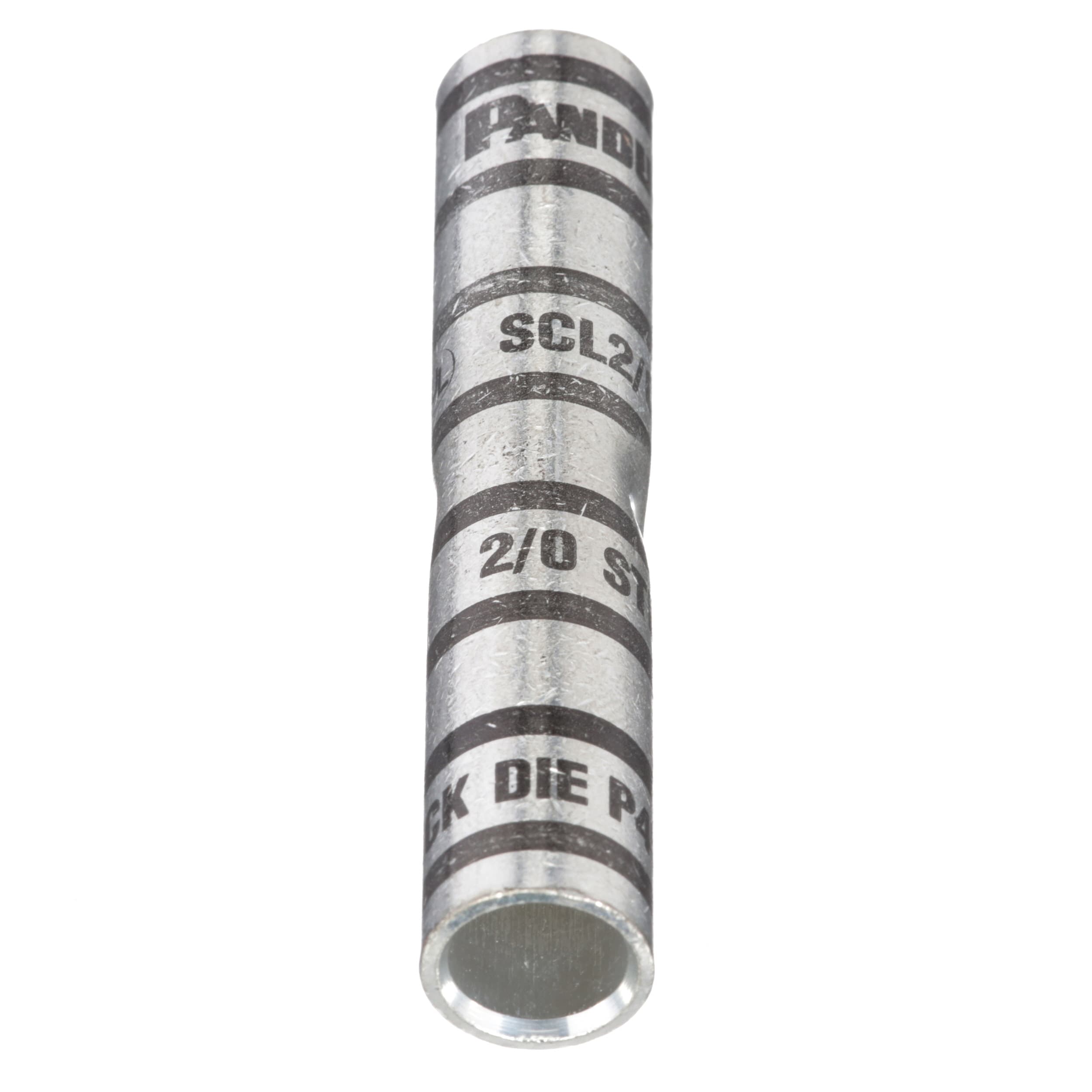 Copper butt splice, long barrel, 2/0 AWG wire.