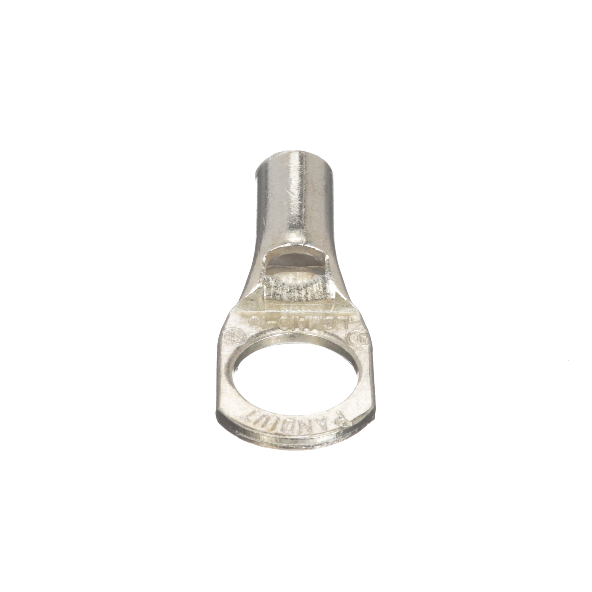 One-hole, metric conductor, standard barrel with window lug, 10mm² wire, M10 stud hole.