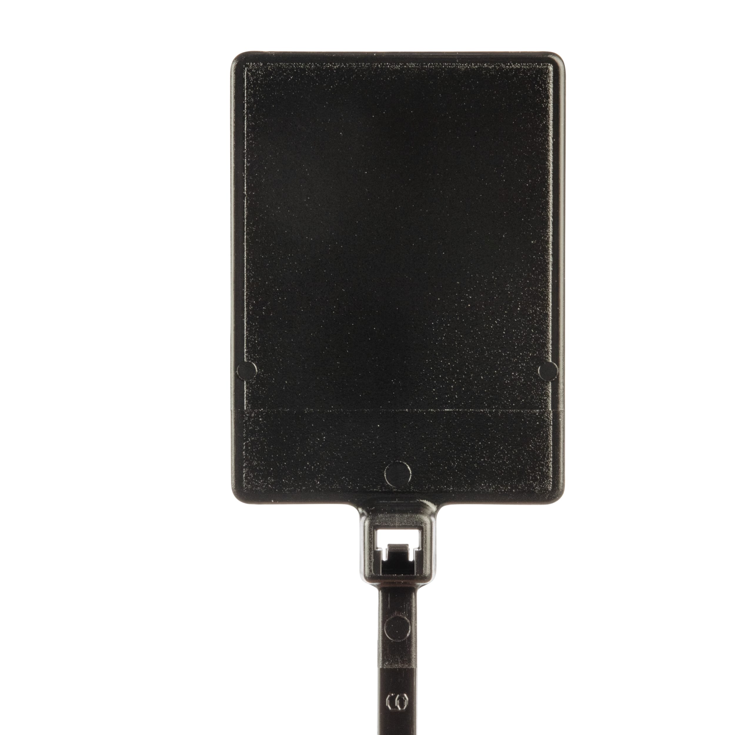 Marker Tie, Flag Style, 5.1 Inches (130 mm) Length, Miniature, Black. Weather Resistant for greater resistance to damage caused by ultraviolet light. Indoor or outdoor use. Used to fasten and identify bundles at the same time. One-piece construction for consistent performance and reliability. Can be marked with Panduit Marker Pens (sold separately) or Custom imprinted with text, symbols or trademarks available using Panduit Custom Hot Stamping Service. Curved tip is easy to pick up from flat surfaces and allows faster initial threading.