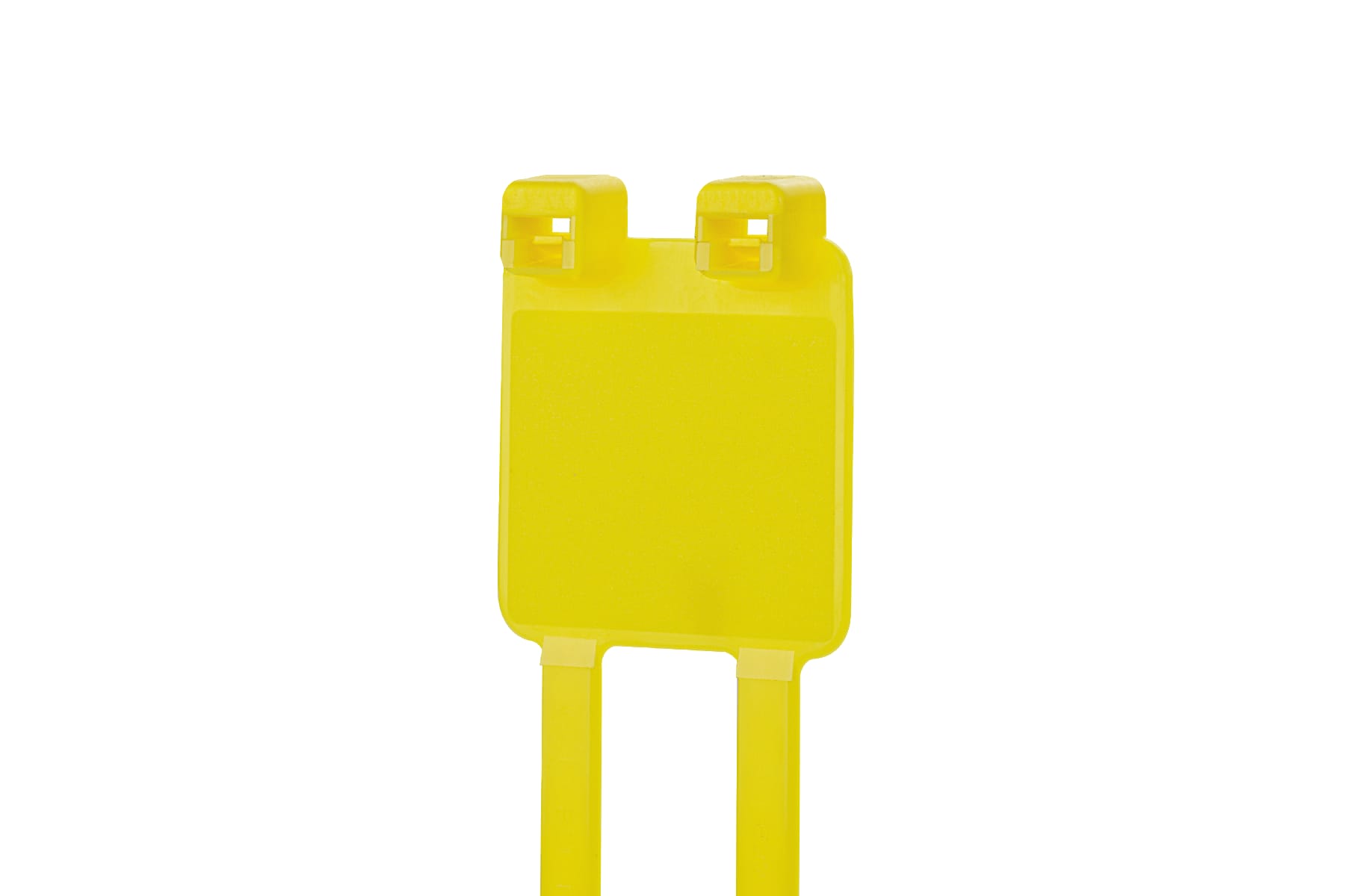 Pan-Ty® marker tie, wrap, standard cross section, 7.4 (188mm) length, .87 x 1.07 (22.1 x 27.2mm) marker write-on area, nylon 6.6, yellow.