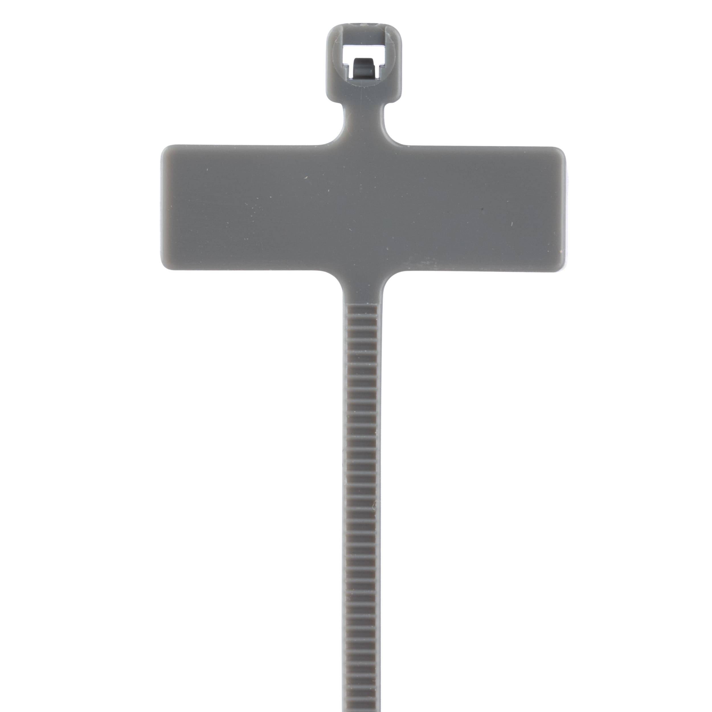 Pan-Ty® marker tie, wrap, miniature cross section, 3.9 (99mm) length, .26 x .95 (6.6 x 24.1mm) marker write-on area, nylon 6.6, gray.