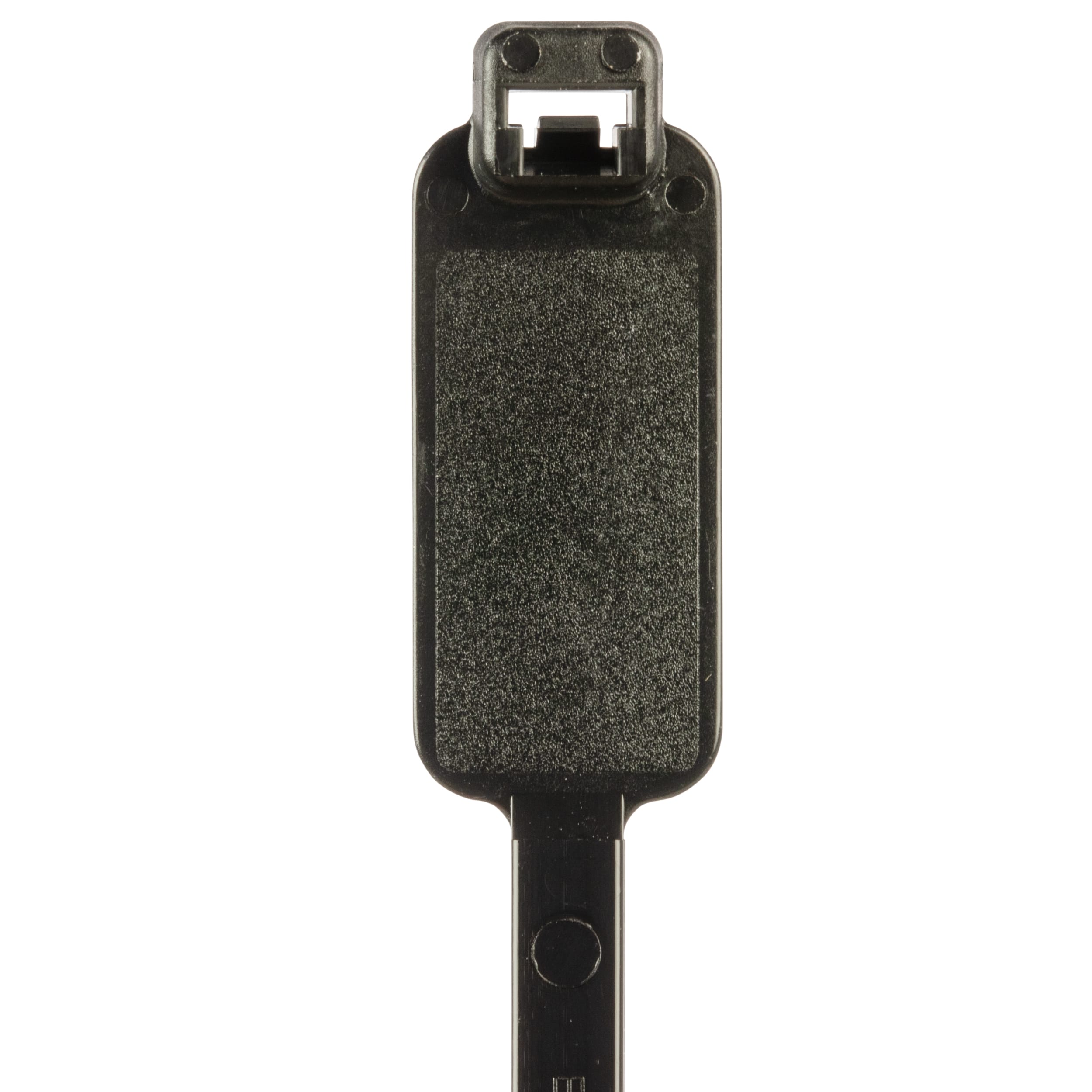 Pan-Ty® marker tie, wrap, standard cross section, 7.4 (188mm) length, .44 x .87 (11.1 x 22.1mm) marker write-on area, weather resistant nylon 6.6, black, bulk package.