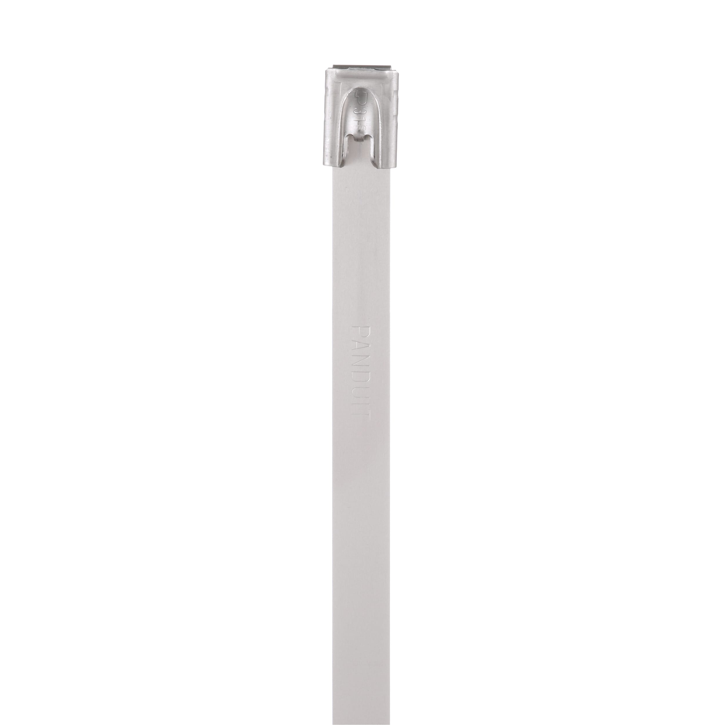 The MLT6H-LP316 Pan-Steel® 316 grade stainless steel cable tie speeds up installation with a patented, wide entry self-locking head that eases band threading and insertion. Unique locking ramp design and strengthening ribs allows the tie to lock into place at any length along the tie body with increased lock strength. Fully rounded edges ensure worker and bundle safety.