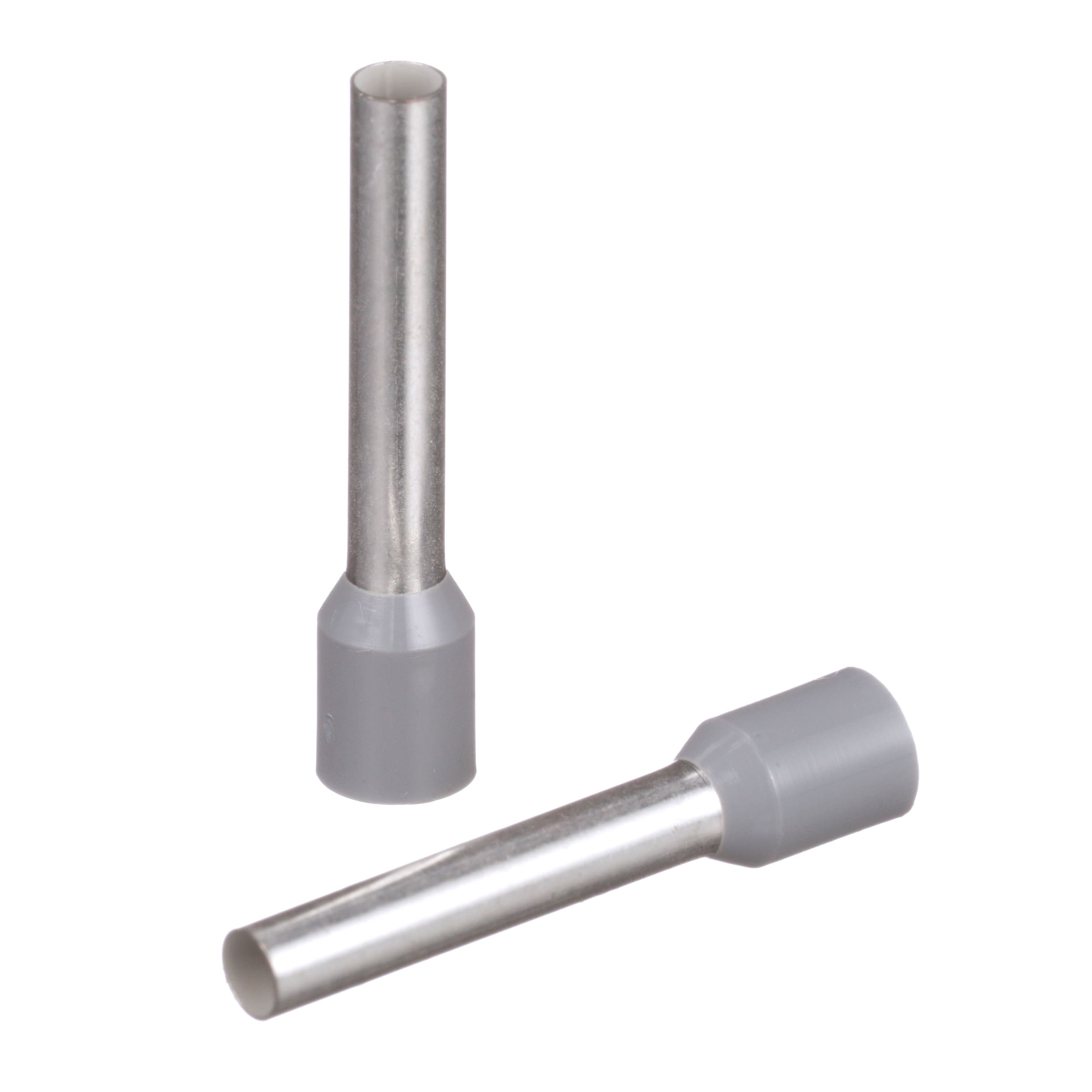 Polypropylene insulated ferrules single wire gray DIN end sleeve, 12 AWG (4.0mm²), .71(18.0mm) pin length.