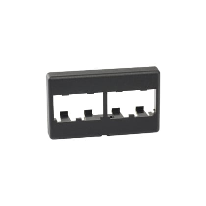 The Mini-Com® Modular Furniture Faceplate accepts four Mini-Com Modules. The faceplate mounts to a standard office furniture opening. The faceplate can be identified with an adhesive label and is black.